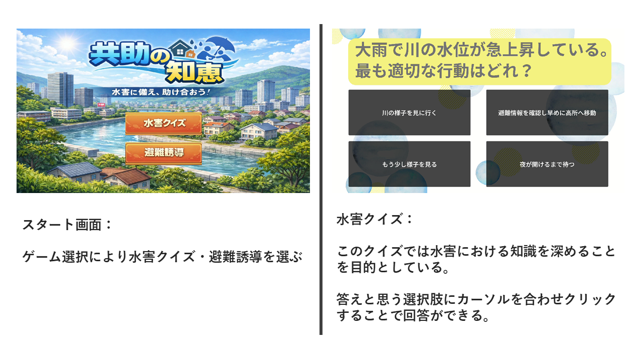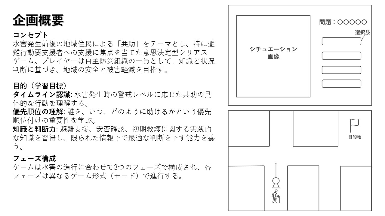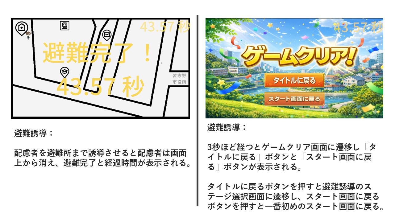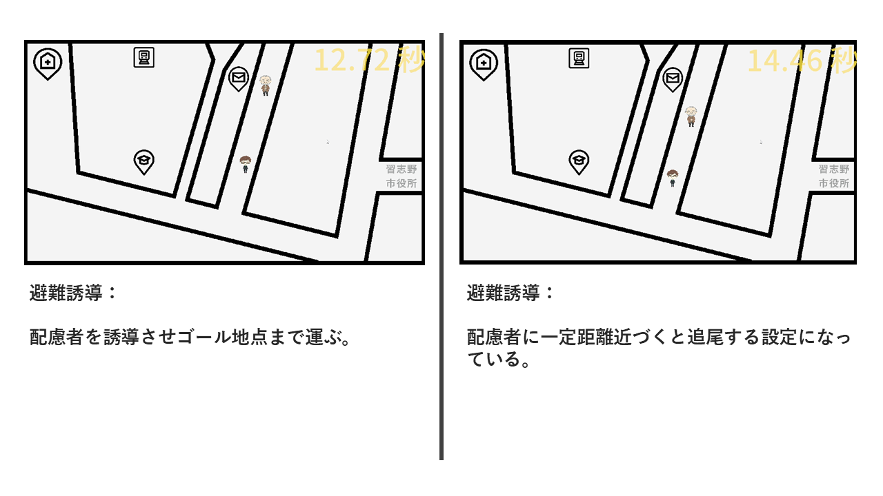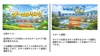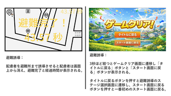 シリアスゲームとしては,とても良い出来です!避難場所をまず確認し,誘導する,マニュアルなしでもわかりやすくて,楽しめました.クイズ部分も勉強になります.